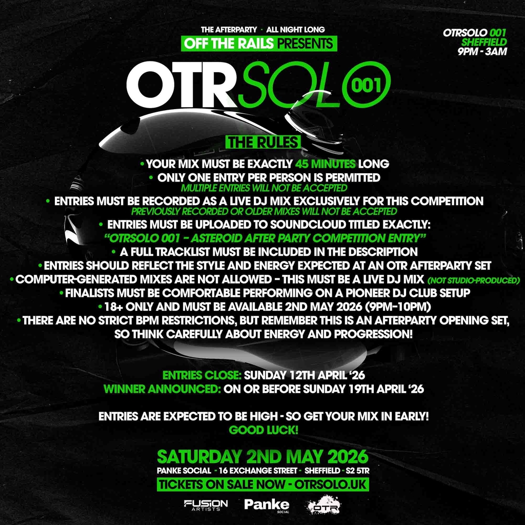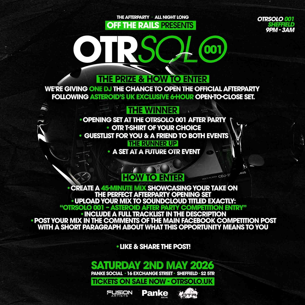 We’re giving one DJ the opportunity to open the official afterparty following Asteroid’s UK exclusive 6-hour open-to-close set in Sheffield.